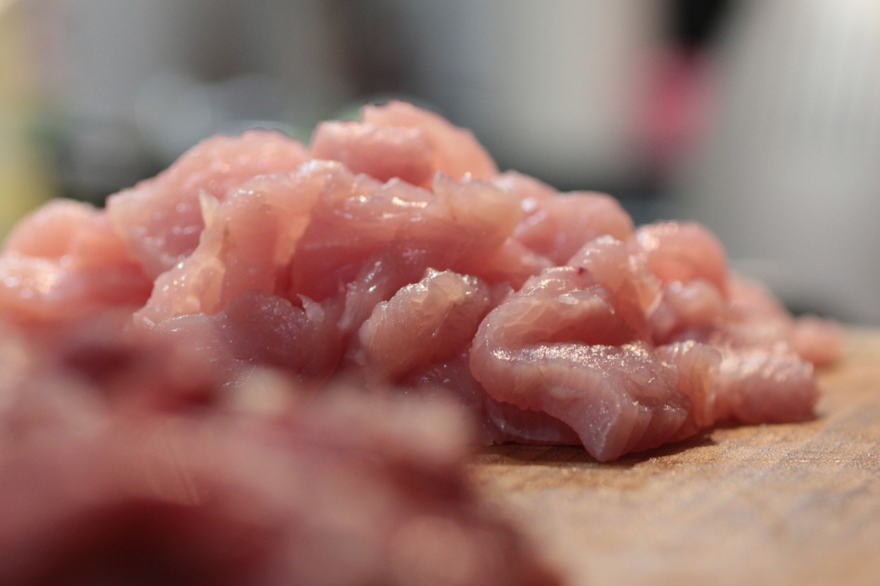 Das Fleisch in sehr dünne Streifen schneiden. | ||||||||