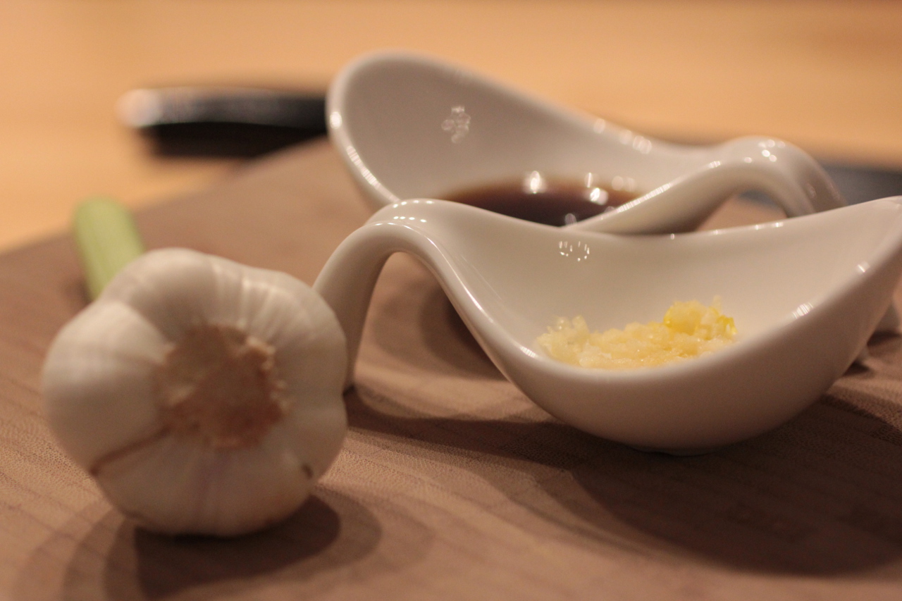 Den Knoblauch schälen und hacken. Zusammen mit Zucker, Stärke und Fischsauce zu einer Marinade vermischen. Diese unter das Fleisch rühren und ca. eine halbe Stunde marinieren. | ||||||||
