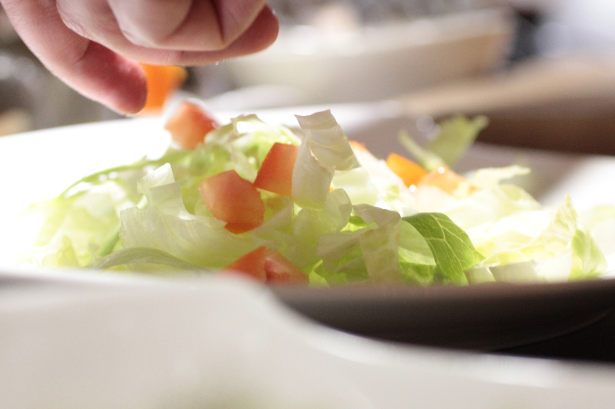 Gewaschene, in Streifen geschnittene Salatblätter auf eine Platte geben und die in Scheiben geschnittenen Tomaten dazu garnieren. Das Rindfleisch darauf verteilen und mit gehackten Erdnüssen betreuen. |